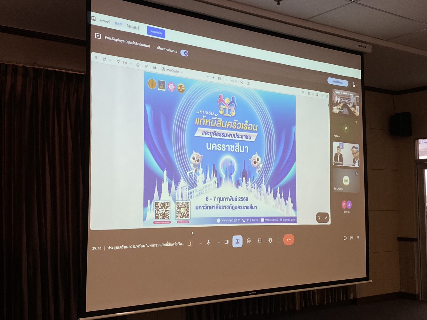 เมื่อวันที่ 21 มกราคม 2569 ผู้ช่วยศาสตราจารย์พิทักษ์ชัย เดชอุดม ประธานศูนย์ไกล่เกลี่ยข้อพิพาทภาคประชาชน และผู้ช่วยศาสตราจารย์สถิต จำเริญ คณะทำงานศูนย์ไกล่เกลี่ยข้อพิพาทภาคประชาชนได้เข้าร่วมการประชุมเพื่อจัดเตรียมโครงการมหกรรมบริการวิชาการทางกฎหมาย วางแผนการดำเนินงาน รวมทั้งปรึกษาหารือเกี่ยวกับแนวทางการไกล่เกลี่ยข้อพิพาทต่างๆให้กับประชาชนโดยในการประชุมครั้งนี้มีหน่วยงานอื่นๆที่ได้เข้าร่วมเป็นผู้ไกล่เกลี่ยในโครงการดังกล่าวด้วยอีกมากมายซึ่งโครงการดังกล่าวจะจัดขึ้นในวันที่ 6-7 กุมภาพันธ์ 2569