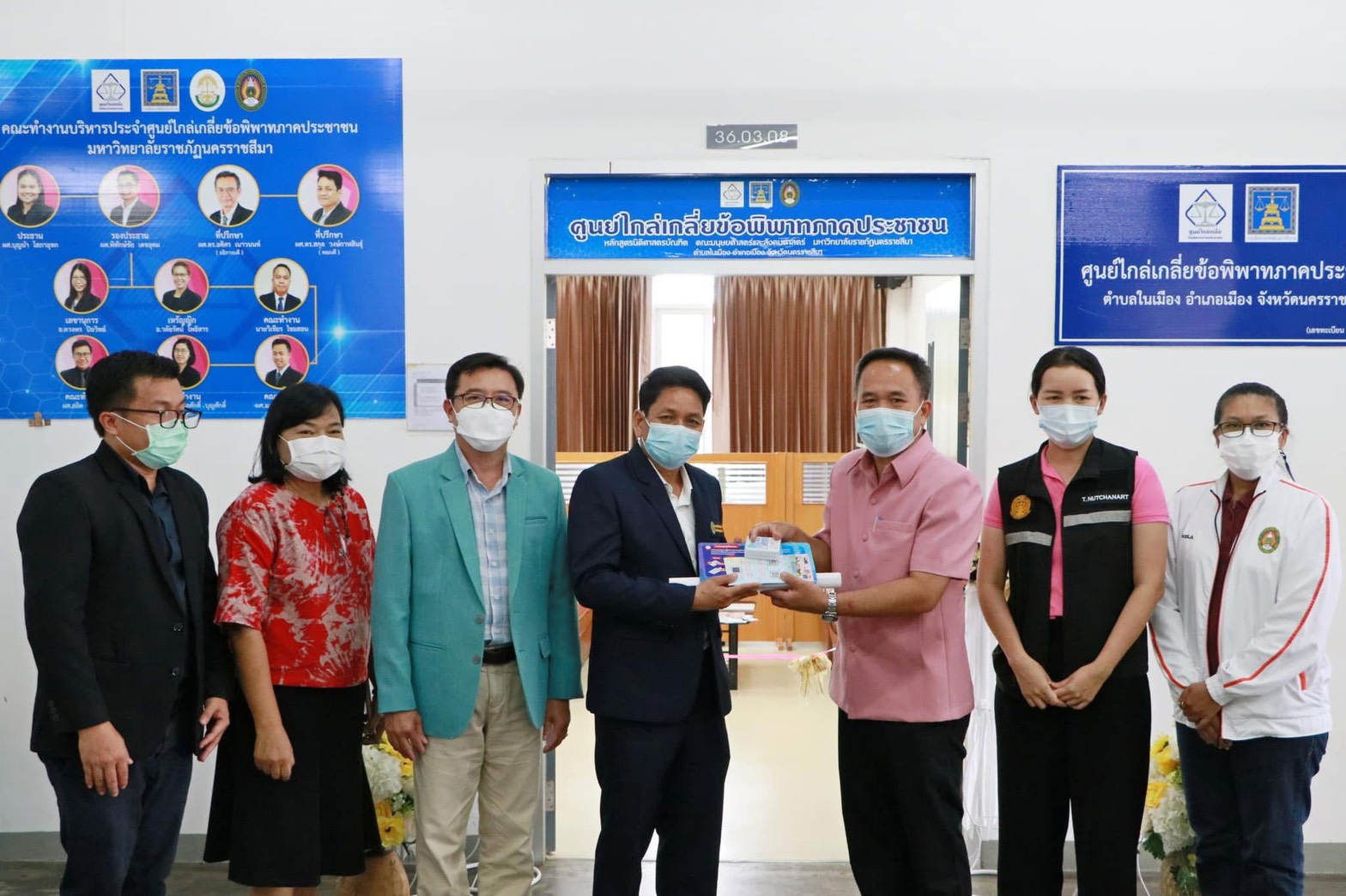 พิธีมอบป้ายศูนย์ไกล่เกลี่ยภาคประชาชน มหาวิทยาลัยราชภัฏนครราชสีมา พร้อมเปิดให้บริการเพื่อบริการวิชาการด้านกฎหมายเพื่อพัฒนาท้องถิ่น 17 พฤษภาคม 2565